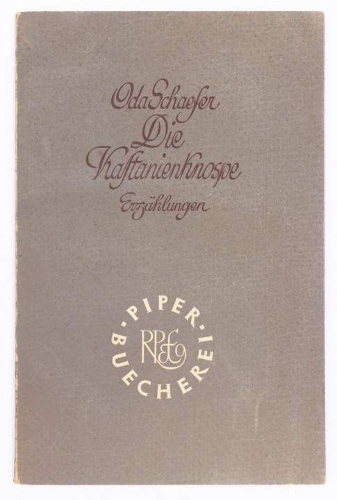Schaefer, Oda. Die Kastanienknospe. Erzählungen.74, (6) SS. Kl.-8vo. Orig.-Brosch., Ausstattung Emil Preetorius. – München, R. Piper, (1947). “Piper Bücherei”, 16. Erste Ausgabe. Mit eigenh. Widmung der Autorin „Für Bettina Hürlimann herzlichst Oda Schaefer 1948“ auf Vortitel. – Wilpert/G. 4. – Etwas gebräunt, sauber. – Best.-Nr. 23038 |